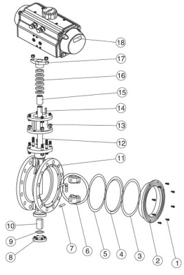 氣動蝶閥(材質碳鋼、橡膠密封、法蘭連接、配雙作用或單作用氣缸、不帶附件)